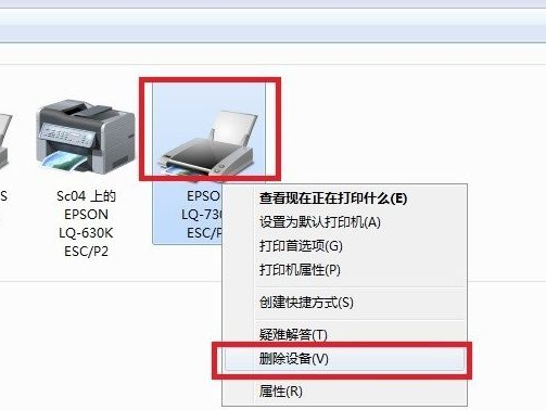 卸載步驟:右擊打印機(jī)選擇刪除設(shè)備。